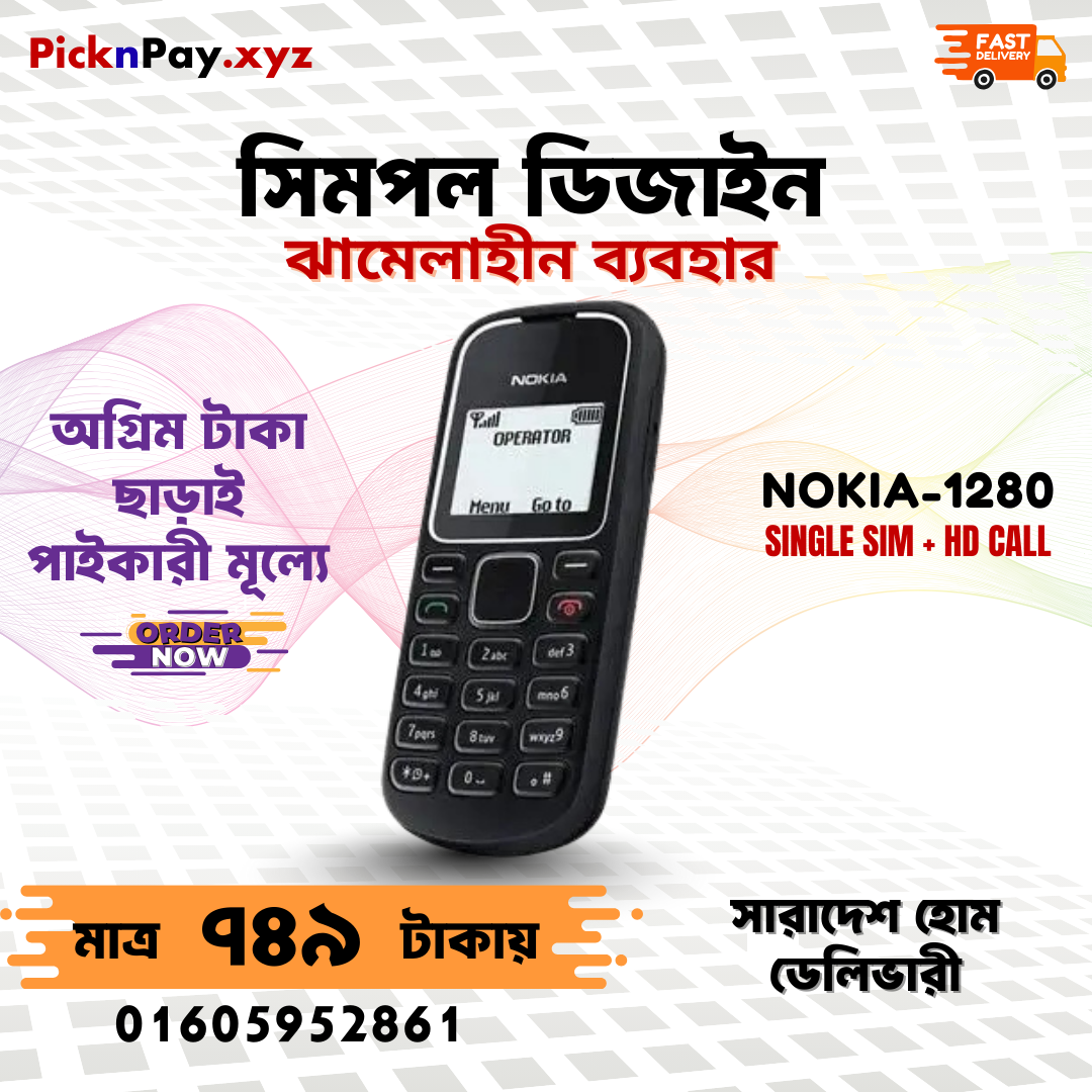 - Nokia 1280 ১টি সিম কার্ড সাপোর্টেড।